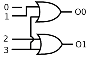 Slouží k zakódování zprávy. Jednoduchým kodérem se myslí takový, který očekává pouze na jednom ze vstupů log. 1 a podle toho, na kterém vstupu to bylo, nastaví hodnoty na výstupech. Z takového signálu lze pak původní zprávu dekódovat. Vstupů je 2n, kde n je počet výstupů.